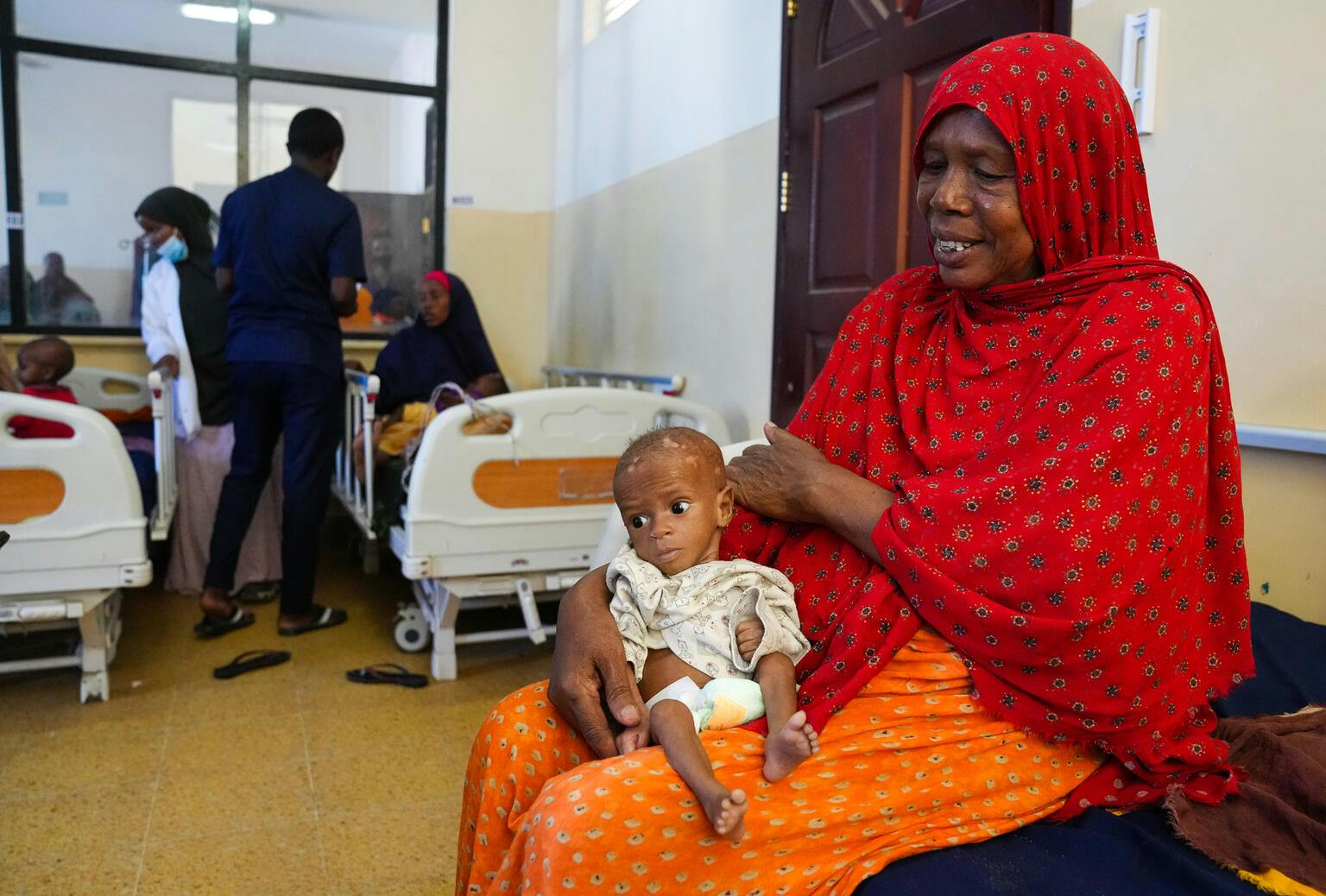 Children like eight-month-old Ibrahim are being carried into Banadir Hospital in Somalia each day. Ibrahim was brought in by his grandmother and was suffering from acute malnutrition.