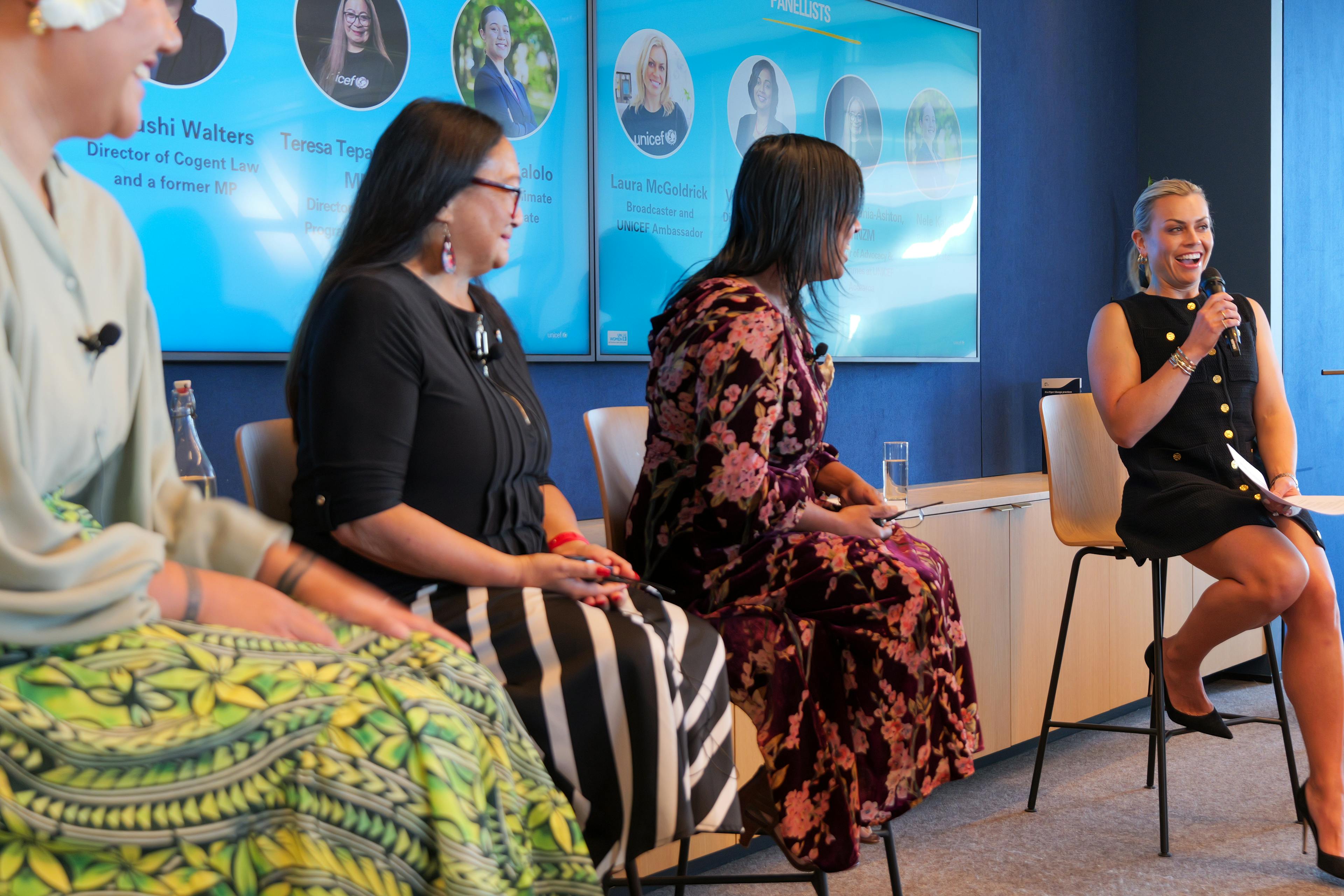 In March, UNICEF hosted a panel of industry-leading wahine in celebration of International Women's Day. Our host, Laura McGoldrick was joined by Cognet Law Director and former MP Vanushi Walters, UNICEF Aotearoa’s Teresa Tepania-Ashton, and educator and youth advocate Nele Kalolo. The discussion centred on the importance of celebrating women’s achievements and driving gender equality forward.